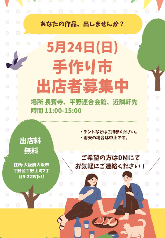 クレオ大阪南ホームページによると当日は、アニメ映画上映会やスプリングコンサート・マジックショー・フードドライブやワークショップなどが行われるほか、お茶室や雑貨販売・メダカすくい・軽食や飲み物販売などもあるそうです。また以前号外NET平野区でも記事を投稿した、瓜破2丁目のデイサービスセンターカラふるさんの、じぃじばぁばのフルーツ大福も販売されるそうですよ。